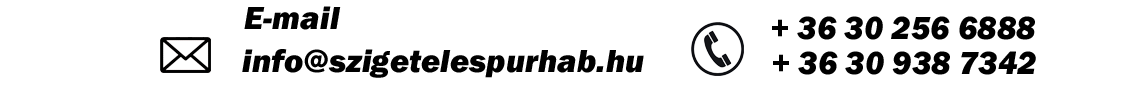 Telefon: + 36 30 256 6888  vagy  +36 30 938 7342             www.szigetelespurhab.hu                                    info@szigetelespurhab.hu